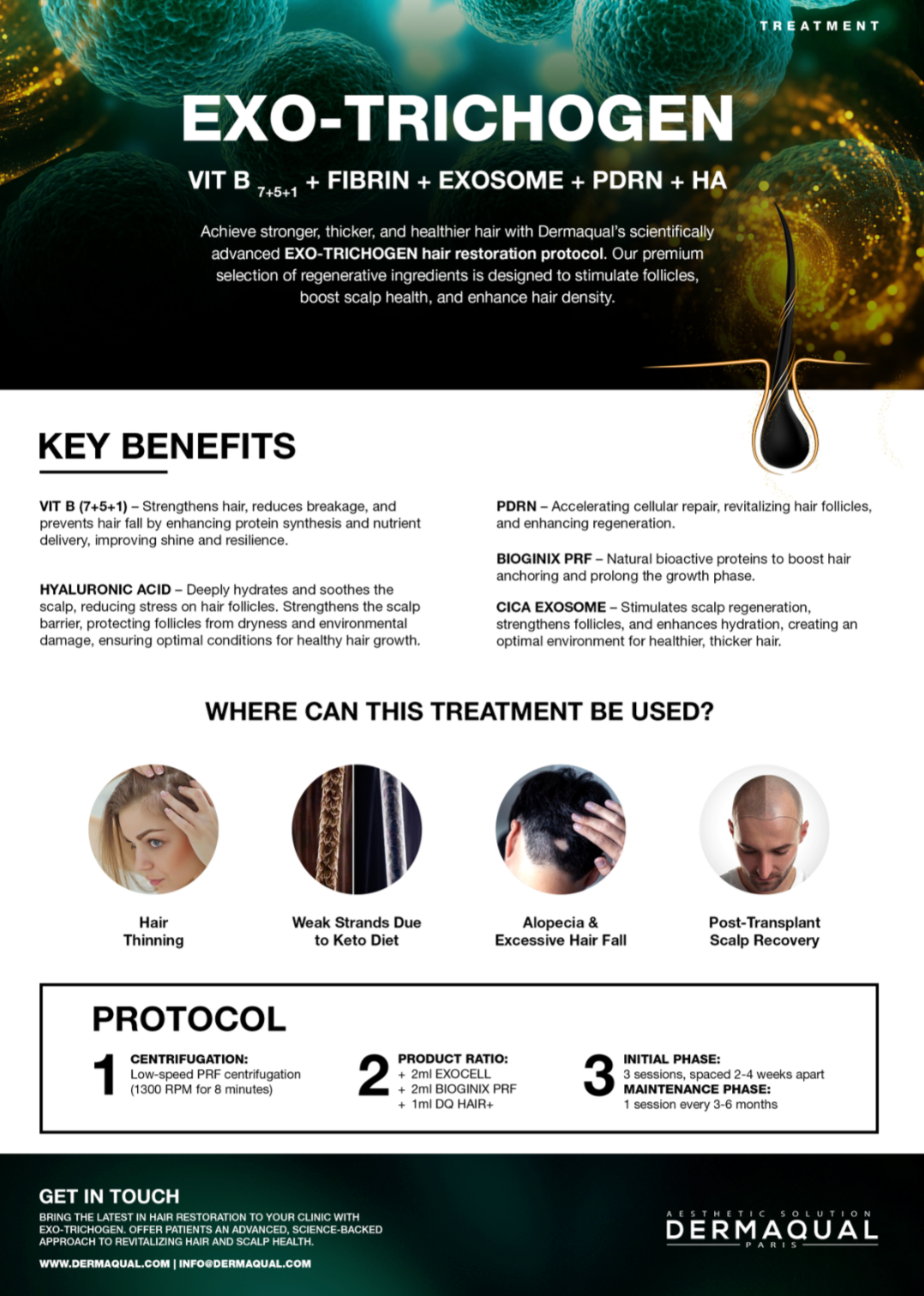 Cica Exosome can provide a 50% increase in scalp regeneration and a 35% increase in follicle strength. In combination with enhanced hydration, this creates an ideal environment for promoting healthier and thicker hair growth.
