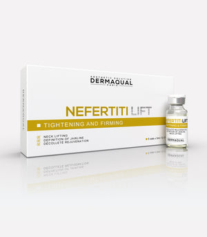 NEFERTITI LIFT is the first product specifically designed for a non-surgical face and neck-lifting treatment. This firming meso-cocktail instantly hydrates, tightens, and sculpts the face and neck area and lifts and refines the décolleté and neckline. DMAE is highly active as an antioxidant and has antiaging benefits. It is characterized by its ability to improve sagging skin. Silanetriol (organic silicon) regenerates the epidermal fibers. The formula helps rebuild natural collagen, promotes cellular nutrition, boosts cell turnover, and improves elasticity. NEFERTITI LIFT has an uplifting effect on the face, neck, and décolletage. It’s an excellent adjuvant in antiaging therapy to fight against signs of fatigue.